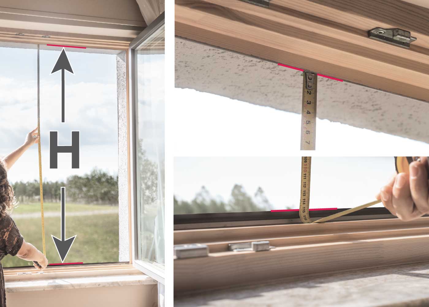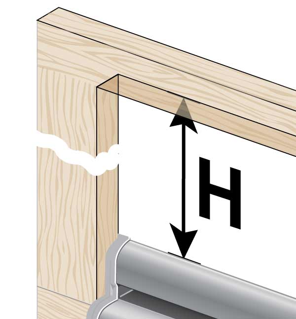 Messen Sie die Höhe der Fensteröffnung (H), wie in der Abbildung gezeigt.