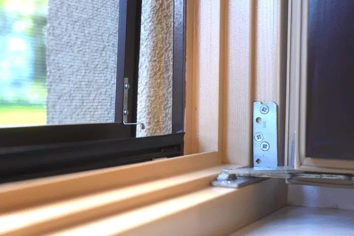 Rahmen-Insektenschutzgitter für nach innen öffnende Holzfenster mit Aluminiumabdeckung