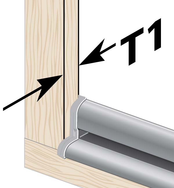 Messen Sie die Rahmenstärke (T1) an der Seite des Fensters, wie in der Abbildung gezeigt.