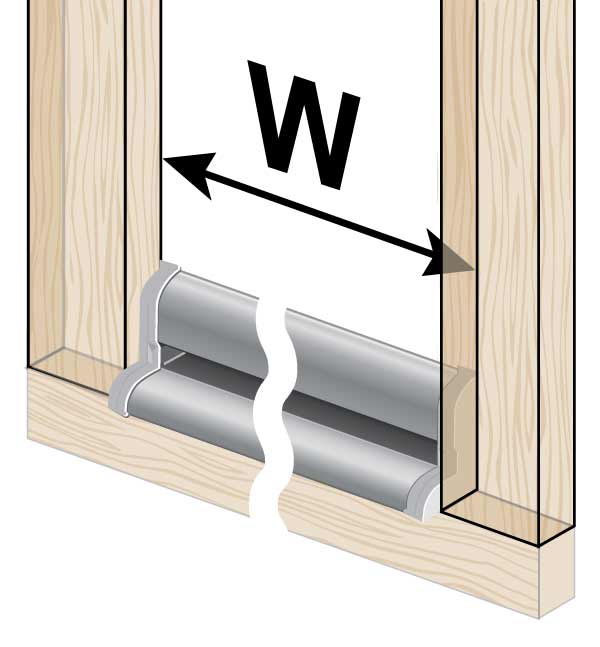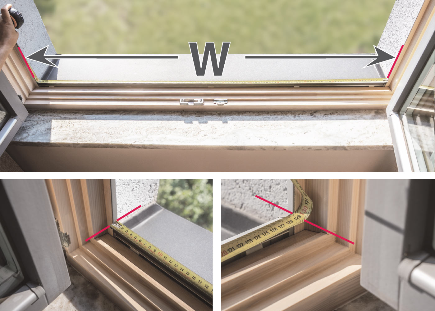 Messen Sie die Breite der Fensteröffnung (W), wie in der Abbildung gezeigt.