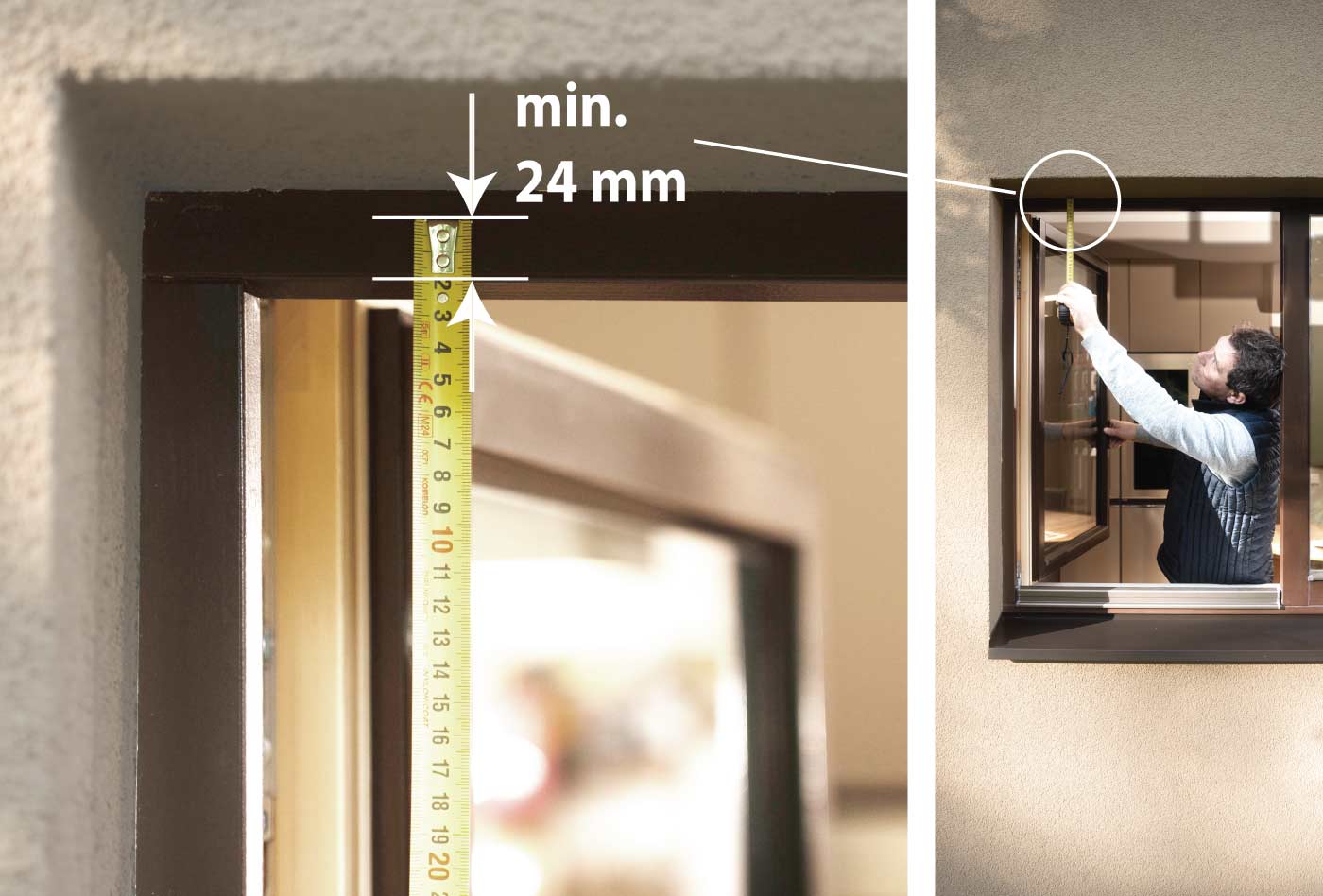 Stellen Sie sicher, dass im oberen Bereich des Rahmens mindestens 24 mm Abstand vorhanden ist.