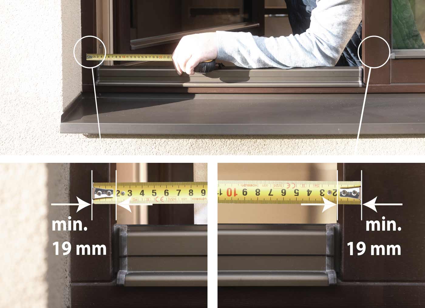 Dieser Abstand ist für die Außenmaße des Insektenschutzgitters erforderlich.