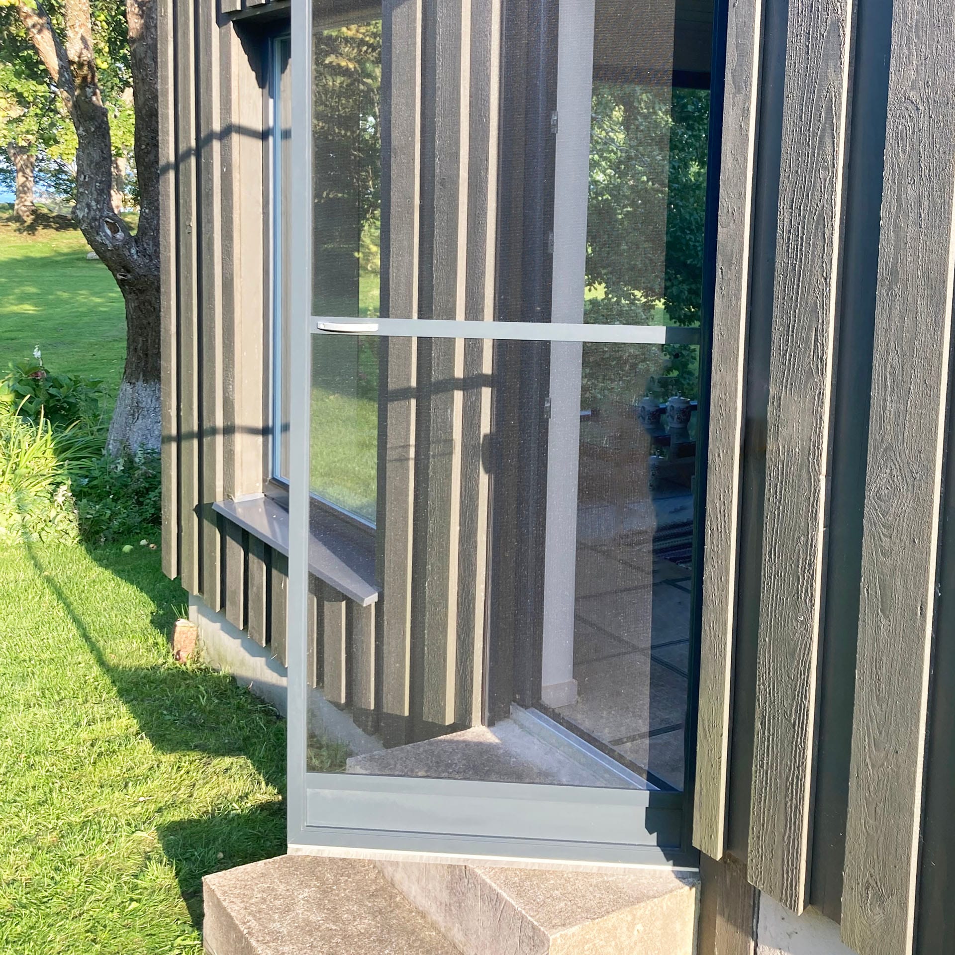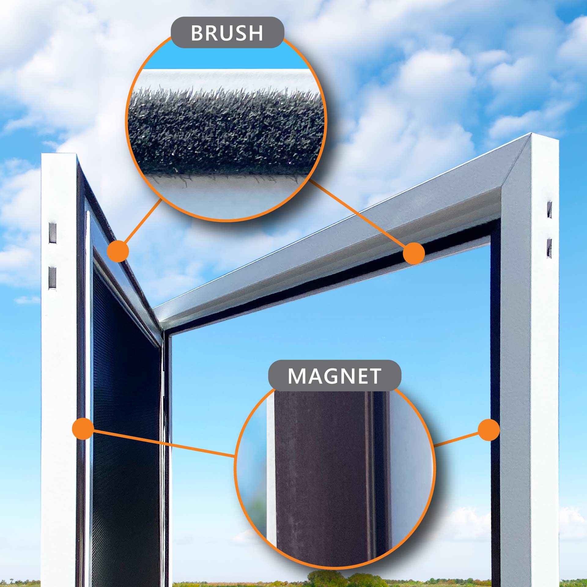 The insect screen door is intended for swing doors. The best fit and practical use is to mount this screen on doors leading to the terrace, balcony or garden. Insect screen doors are designed for frequent use where you regularly go in and out of the house. If you have a pet, you can consider a pet screen on the lower part of the insect screen door, which is made of extra durable material so that the pet can better see the screen and it can better resist scratching. But even a pet screen cannot withstand high pressures from large pets and can come off.